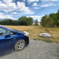 The Prius can comfortably sleep two people if you’re used to sleeping two in a 3-person tent. If you’re traveling alone, it’s about as roomy as a full size mattress. Of course you can minimize the space if you need room for more stuff. This could be a fridge, camping gear, etc. All you need is a camping pad. If you want to use only half of the space, the most luxurious camp pad that will leave some space next to you is the REI Camp Dreamer XL Self-Inflating Deluxe Bed, which is 4″ thick, but can still be rolled up and tossed into a roof box when you want room for people in your car. The only downside is that it’s too wide to leave the single back seat in the upright position, and that can be really useful if you need a place to sit to wash up, change clothes, put your shoes on, etc. This is really useful if you don’t have a Habitent or didn’t set one up.